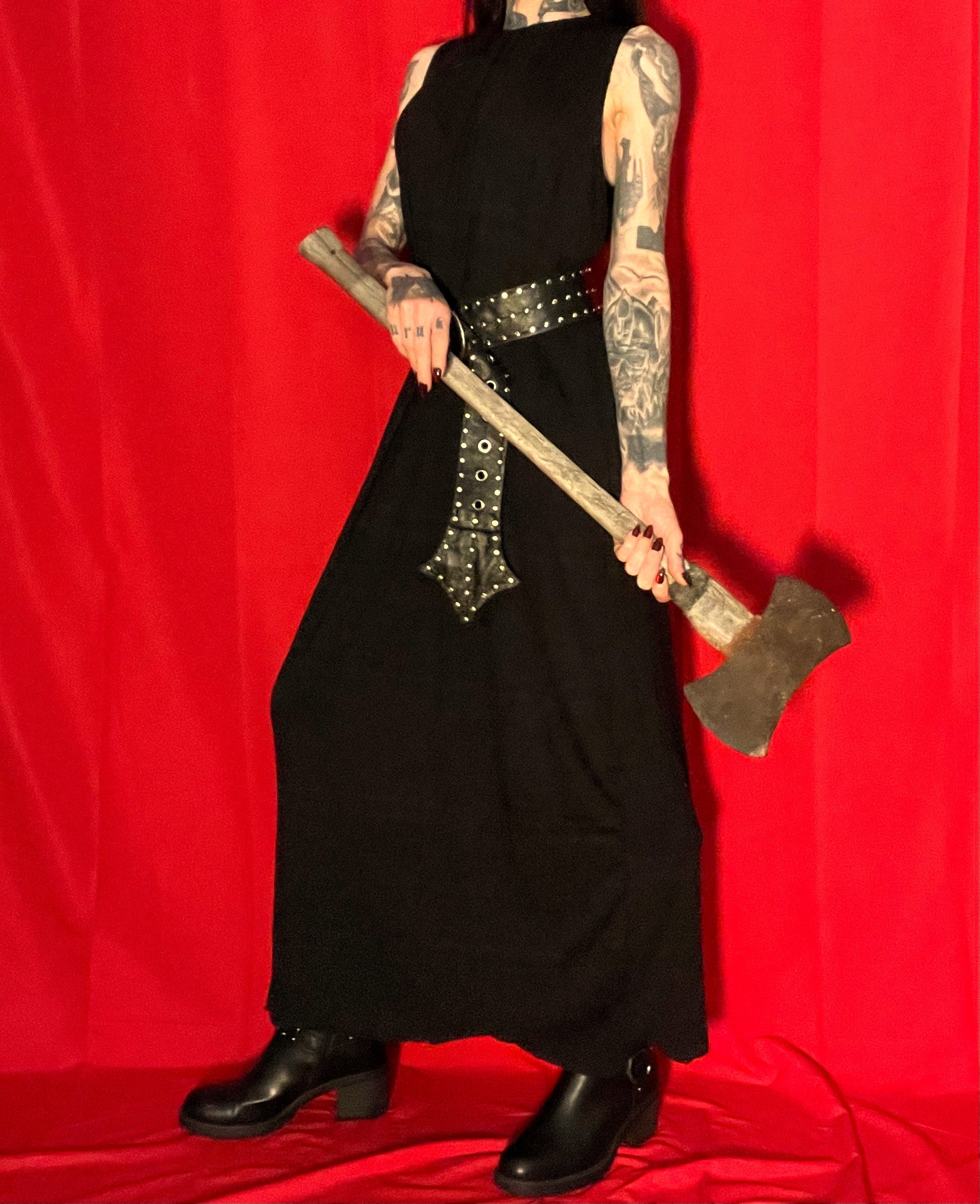 Girls maxi dress handmade from scratch with 4-way stretch rayon. Gathered neckline with keyhole tie in the back, raw bottom hem and a super loose fit with tons of stretch.