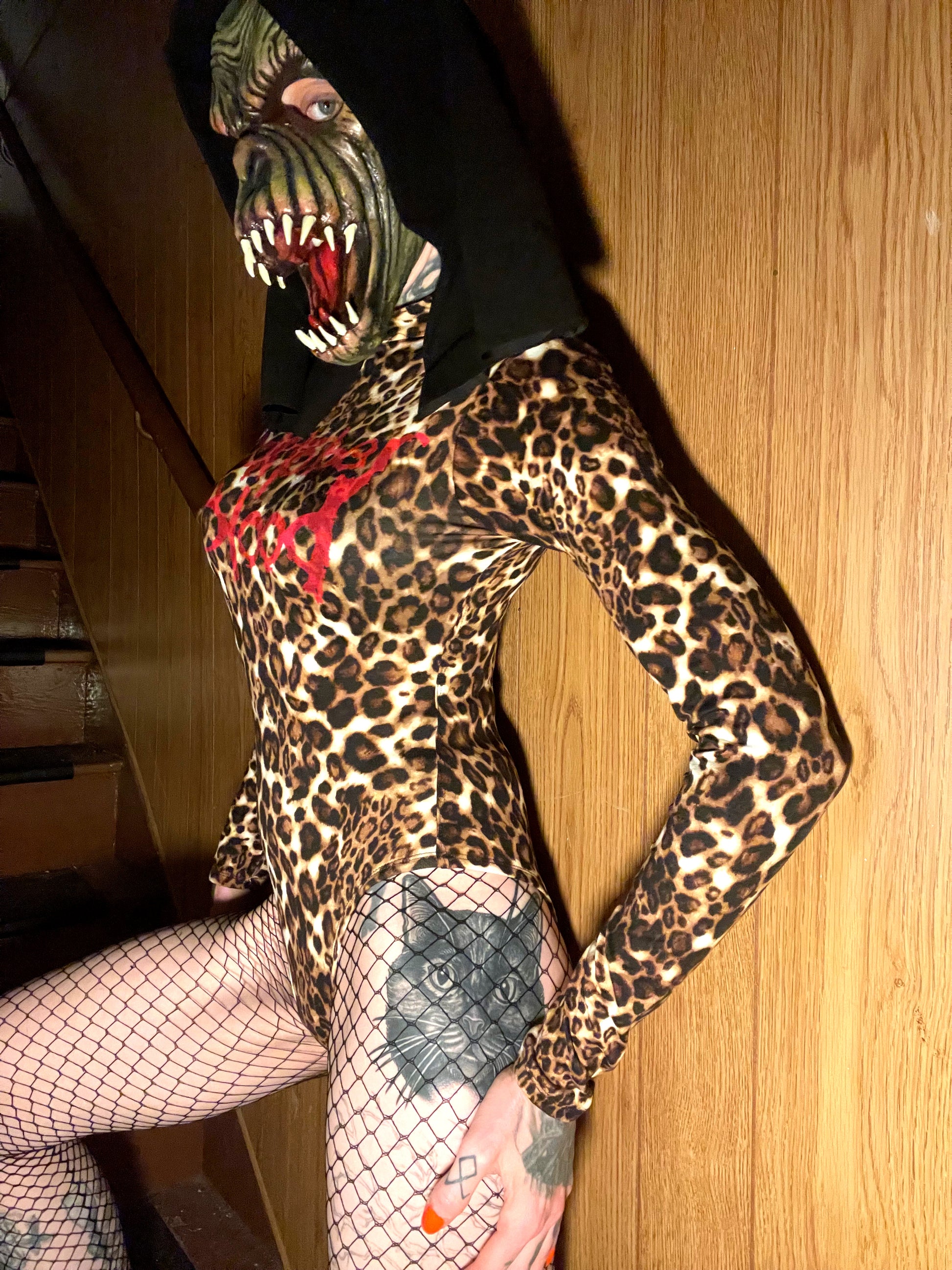 Girls leotard handmade from scratch with leopard rayon spandex blend. Print on front with collar and zip closure, long sleeves and tons of stretch.